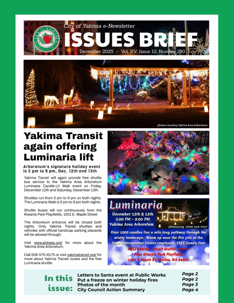 Issues Brief is published monthly by the City of Yakima Community Relations Office.