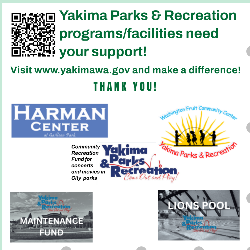 Due to funding constraints, the City of Yakima had to make some budget reductions for 2026 that will impact Yakima Parks and Recreation programs and facilities. Thanks to a partnership with the Yakima Valley Community Foundation, there are ways you can directly support these programs/facilities: