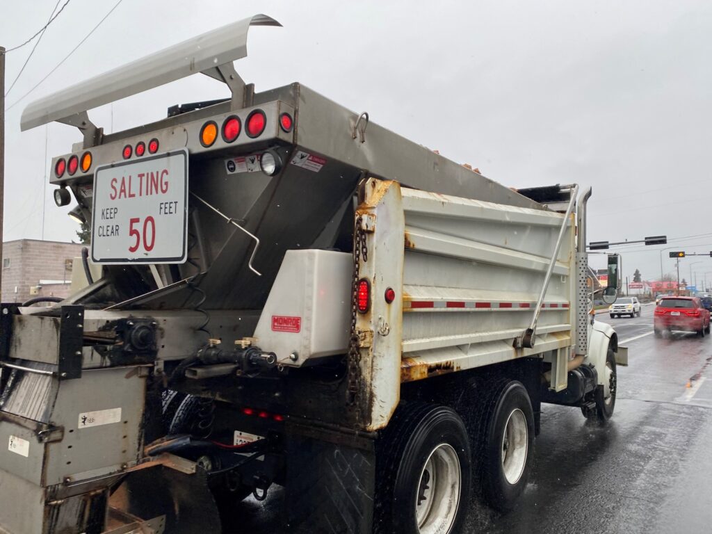 - Don’t follow a de-icing spray truck, snowplow or sanding truck too closely. They may stop suddenly or spray sand, rocks or other material.