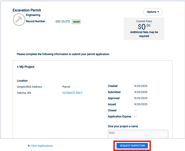 5. Click “Request Inspection;” and