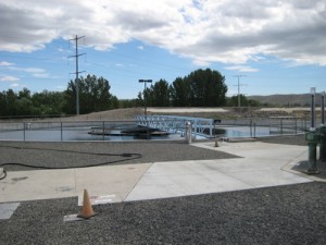 A circular basin in which effluent from the activated sludge process is held for a period of time during which the heavier biomass (microorganisms) settle to the bottom as “activated sludge.” This sludge, teaming with hungry microorganisms, can be returned to the first aeration basin to begin the activated sludge treatment process all over again.